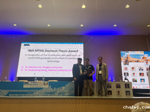 大会还在闭幕式上为 IWA MTSG新星奖、IWA MTSG博士论文奖以及2024年膜法水处理优秀项目奖的获奖者颁奖。IWA MTSG新星奖的获奖者分别为Prof. Yu Yang (China)和Dr. Mohan Qin (U.S.A);IWA MTSG博士论文奖的获奖者分别为Dr. Chuansheng Wang(Singapore)和Dr. Weichen Lin(China);2024年膜法水处理优秀项目奖的获奖者为AsWater Advanced Evirotech Ltd., (Chinese Taipei)。颁奖旨在表彰在膜技术水处理研究方面表现出领导能力、创新能力和发展前景的个人或项目。